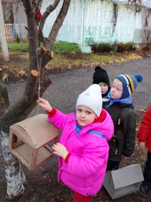 А новое поколение Орлят- дошколят детского сада сегодня открыли "Птичью столовую" на территории детского сада. Ребята развесили кормушки на игровых площадках, чтобы наблюдать за жизнью птиц зимой.
