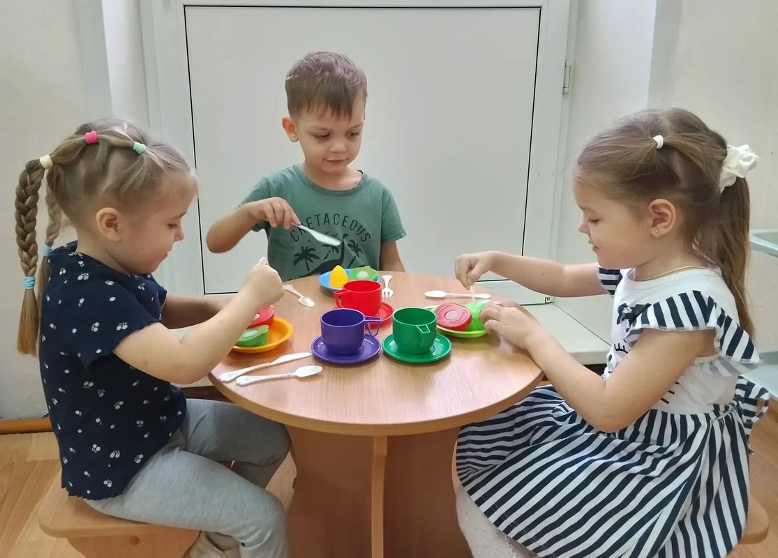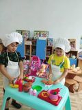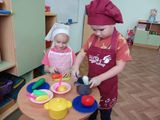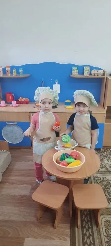 Одна из любимых игр воспитанников любого возраста - это сюжетно-ролевая игра"Поварята"🧑🍳. Ее обязательное условие – участие нескольких человек, ведь какой интерес готовить для себя и себя же угощать? Во время игры дети ненавязчиво повторяют полезные свойства овощей и фруктов.🥕🍇🥦