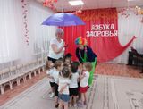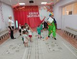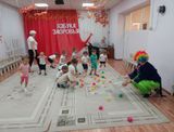 Сегодня прошёл спортивный праздник во второй младшей группе. В гости к ребятам пришел клоун Клепа, который очень любит играть. Вместе с мальчиками и девочками он выполнил зарядку, покатался на "Весёлом паровозике", поиграл в игры "Домики", " Лётчики" и др.