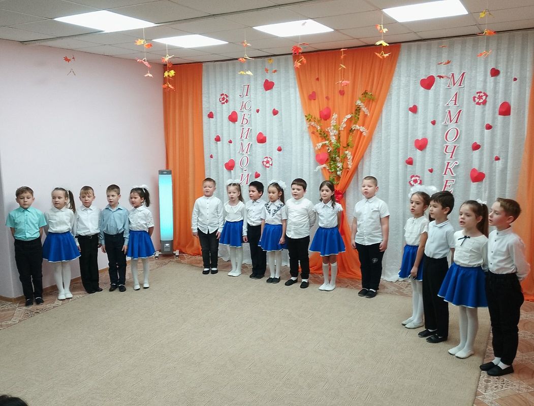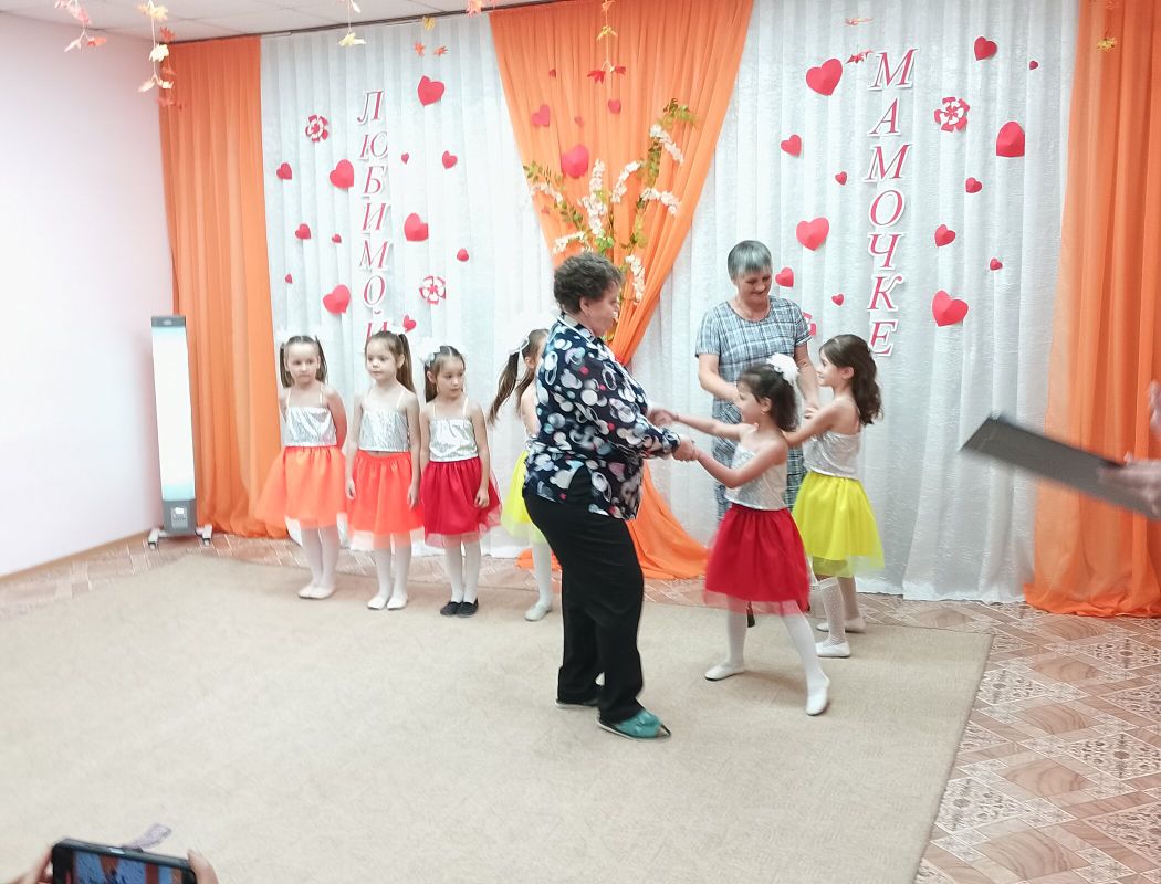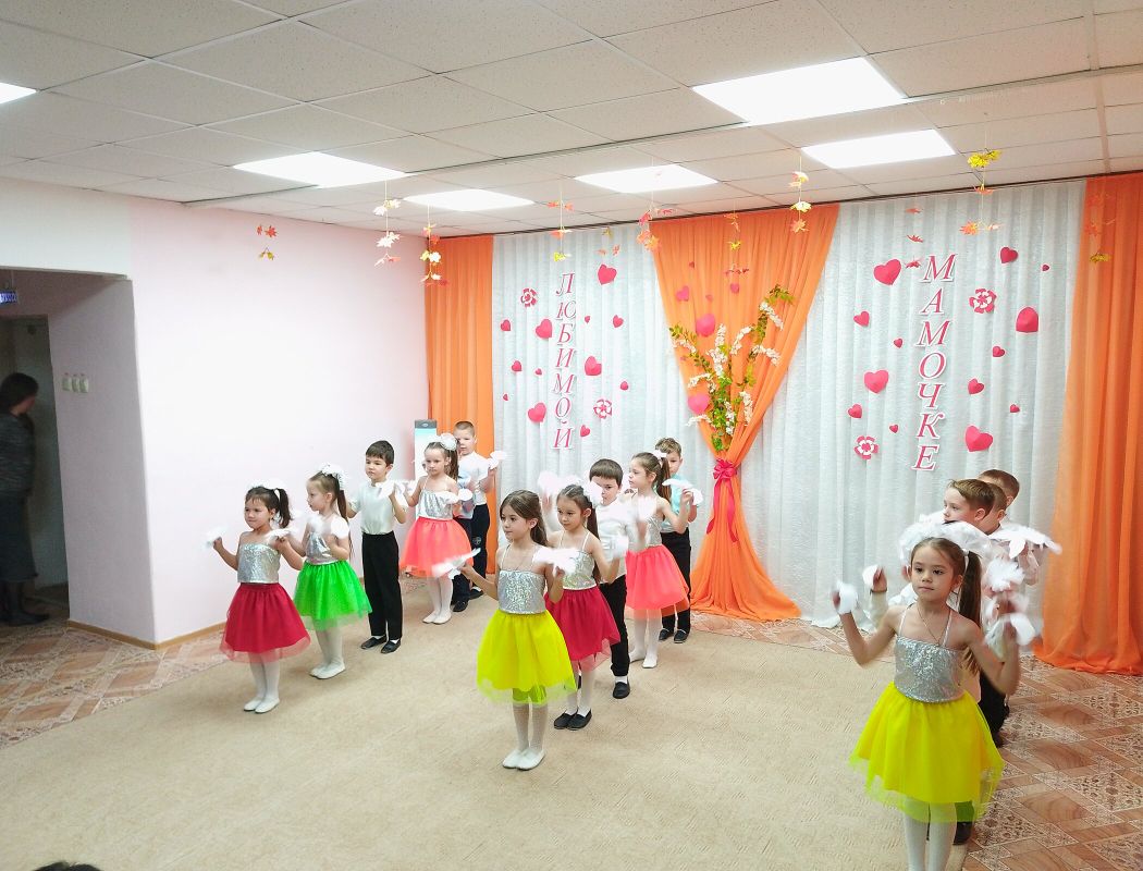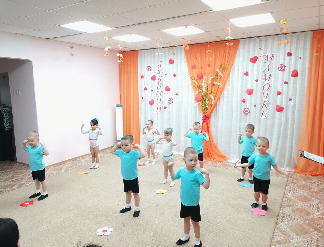 в детском саду по ул Лесная 31А состоялся большой праздничный концерт "Любимой мамочке". Здесь были самые яркие номера от каждой группы.Открыли концерт воспитанники подготовительной группы с трогательной песней " Спасибо мамы", далее всем подняли настроение воспитанники старшей группы зажигательным танцем "Смайлики". Воспитанники средней группы показали мамам танец "Утренняя гимнастика". Девочки растрогали всех песней "Мама моей мамы". Удивил всех "Весёлый оркестр", состоящий из воспитанников средней группы. Ярким номером стало выступление кружка дополнительного образования " Детский фитнес" с танцем "Я рисую этот мир" с яркими лентами. А воспитанники кружка дополнительного образования "Танцевальный серпантин" подарили всем танец с ложками. Завершением концерта стал номер подготовительной группы "Мама".