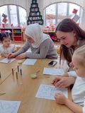 Воспитанники группы раннего возраста детского сада по ул Лесная 31А вместе с родителями и педагогами собрались сегодня вместе, чтобы сделать своими руками подарки для своих близких к празднику Рождества с изображением ангелочков.